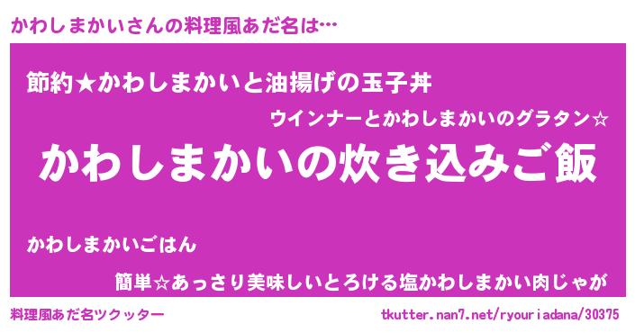 | 胡散臭い通販商品みたいなあだ名 | 『億万長者になれるブレスレット…その名も「かわしまかい」』 |