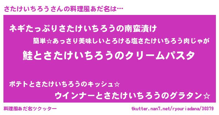 | 男性向けラノベタイトル風あだ名 | 『ノーゲーム・ノーサタケイチロウ』 |