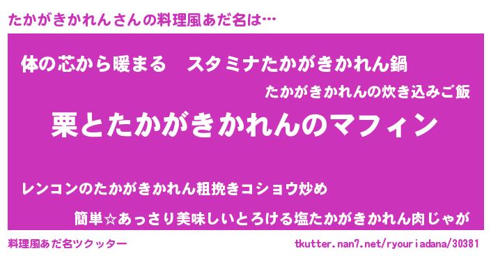 | 男性向けラノベタイトル風あだ名 | 『はたらくたかがきかれんさま!』 |