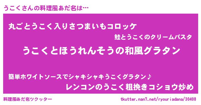 | ヒーロー風カッコイイあだ名 | 『仮面ウコダー』『サイバー戦士ウコク』 |