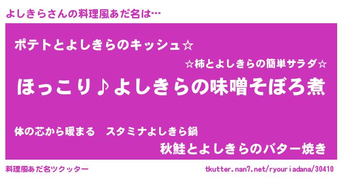 | 胡散臭い通販商品みたいなあだ名 | 『必ず成功する水晶球…その名も「よしきら」』 |