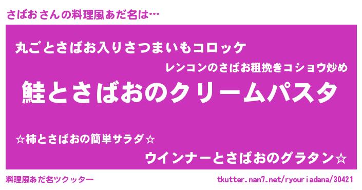 | 女子向けラノベタイトル風あだ名 | 『死神さばおの再婚』『さばお伯爵の花嫁』 |