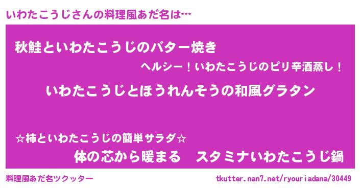 | 男性向けラノベタイトル風あだ名 | 『いわたこうじ~年齢イコール彼女いない歴の魔法使い~』 |