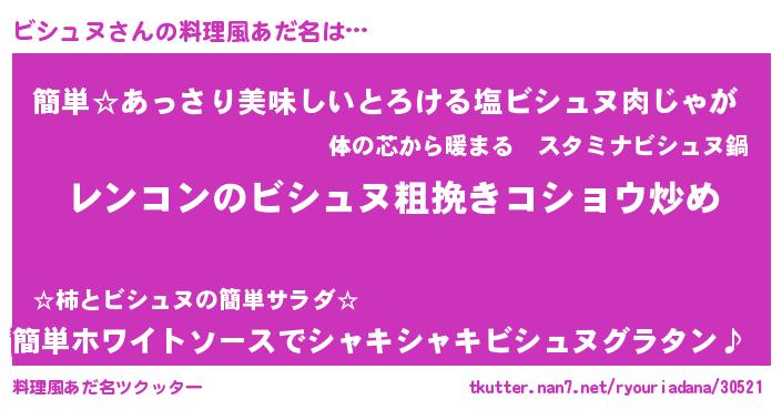 | ヘコむあだ名 | 『ビシュヌ(笑)』『ビシぷりん』 |