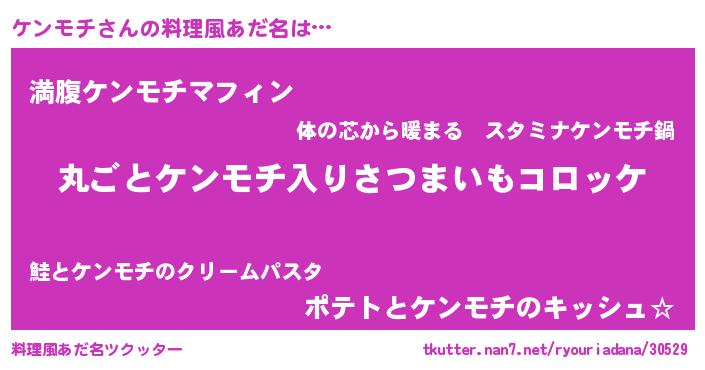 | ヘコむあだ名 | 『ケンモチ(笑)』『ケンぷりん』 |