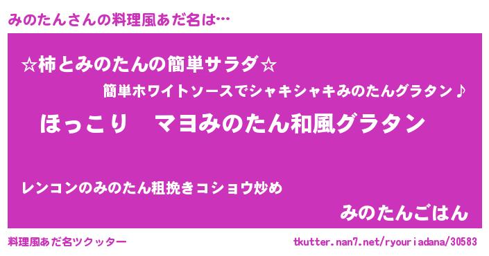| 男性向けラノベタイトル風あだ名 | 『この素晴らしい世界にみのたんを!』 |