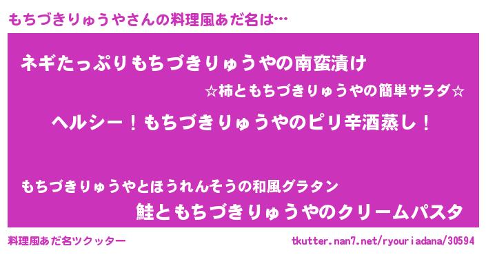 | 男性向けラノベタイトル風あだ名 | 『Re:もちづきりゅうやから始める異世界生活』 |