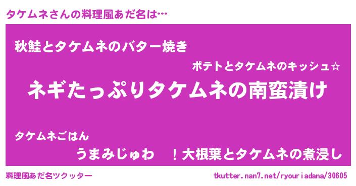 | ファンタジー風あだ名 | 『タケフェル』『タケディッシュ』 |