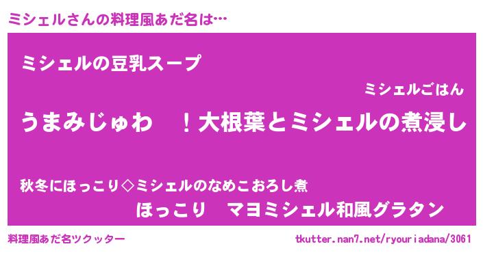 | 欧米人風あだ名 | 『ミシェルクリステル』 |