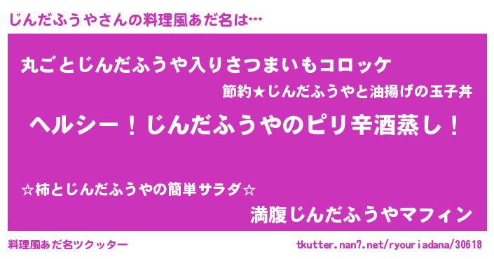 | 男性向けラノベタイトル風あだ名 | 『Re:じんだふうやから始める異世界生活』 |