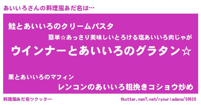 | ヘコむあだ名 | 『なまこ酢』『あいいろ(爆)』 |
