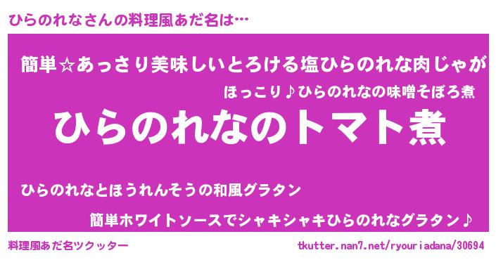 | 女子向けラノベタイトル風あだ名 | 『ひらのれな夫妻のなれそめ』 |