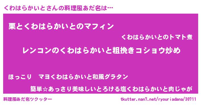 | ヘコむあだ名 | 『くわはらかいと(笑)』『くわにゅー』 |