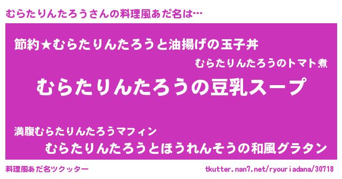 | ピコ太郎風あだ名 | 『ムラ一郎』『ムコ三郎』『ムム太郎』 |