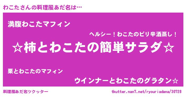| 胡散臭い通販商品みたいなあだ名 | 『絶対に幸福をもたらす水素水…その名も「わこた」』 |