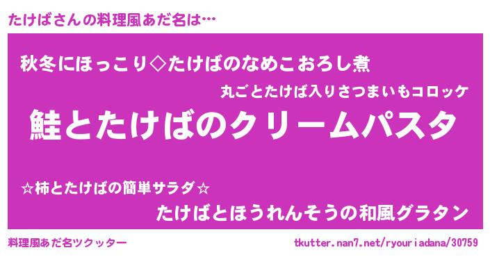 | 女子向けラノベタイトル風あだ名 | 『死神たけばの再婚』 |