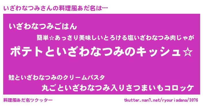 | ヘコむあだ名 | 『いざっぺ』『いざわなつみ(苦笑)』 |