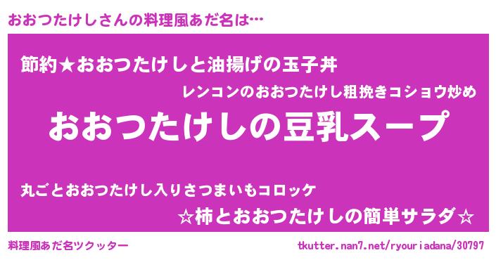 | 男性向けラノベタイトル風あだ名 | 『ダンジョンにおおつたけしを求めるのは間違っているだろうか』 |