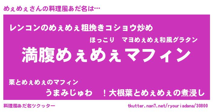 | ヘコむあだ名 | 『めぇめぇ(苦笑)』『豆乳』『めぇお』 |