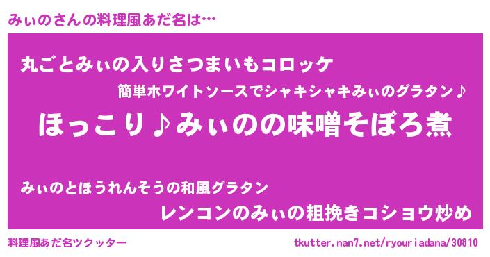 | 胡散臭い通販商品みたいなあだ名 | 『必ず成功する霊験あらたかなお札…その名も「みぃの」』 |