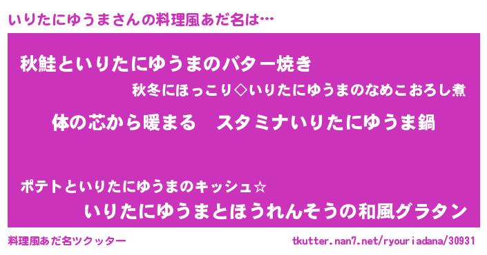 | 男性向けラノベタイトル風あだ名 | 『やはりいりたにゆうまの青春ラブコメはまちがっている 』 |
