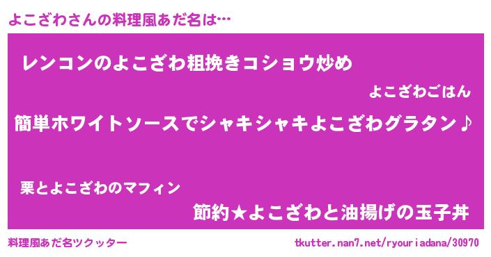 | 男性向けラノベタイトル風あだ名 | 『よこざわの嫁は女の子じゃないと思った?』 |