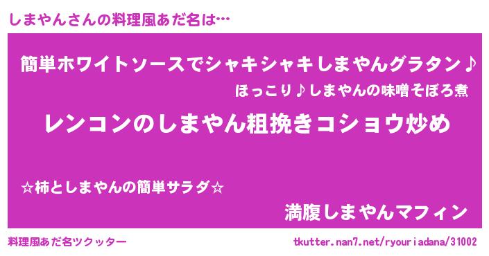 | 意味不明あだ名 | 『自称しまやん』『永久保存しまやん』 |