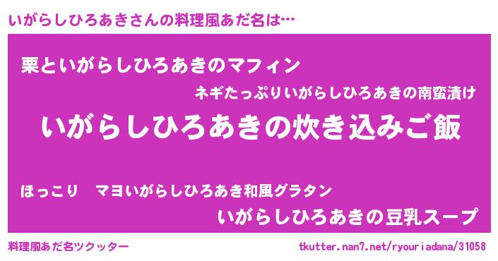 | 意味不明あだ名 | 『とにかく怪しいいがらしひろあき』 |