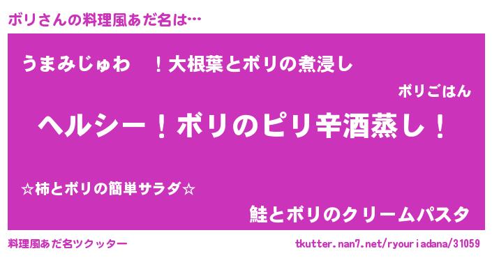 | 男性向けラノベタイトル風あだ名 | 『Re:ボリから始める異世界生活』 |