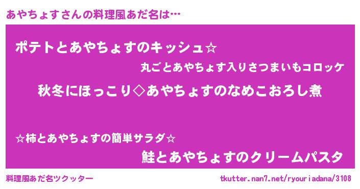 | ピコ太郎風あだ名 | 『アヤ一郎』『アア太郎』『アコ太郎』 |