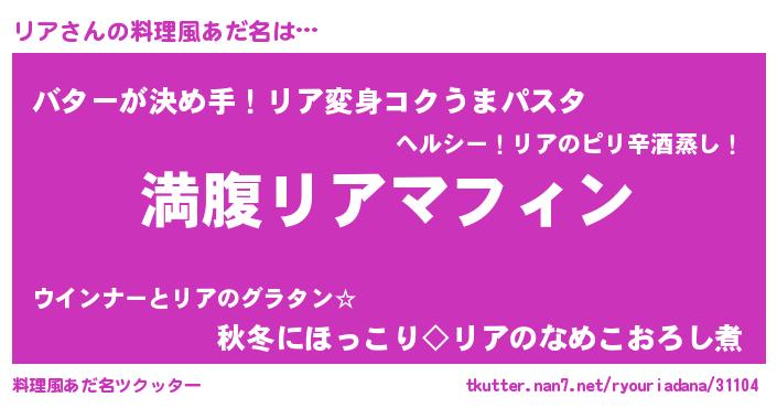 | ヘコむあだ名 | 『リア(笑)』『なまこ酢』『リアっぺ』 |