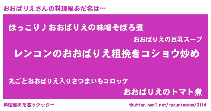 | 欧米人風あだ名 | 『ケンブリッジおおばりえ』 |