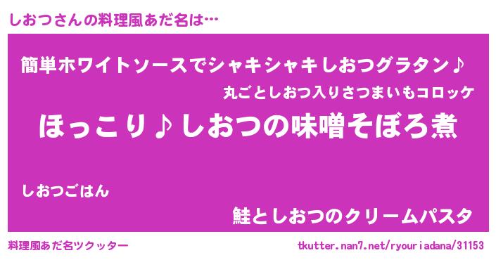 | 女子向けラノベタイトル風あだ名 | 『(仮)しおつのやんごとなき事情』 |