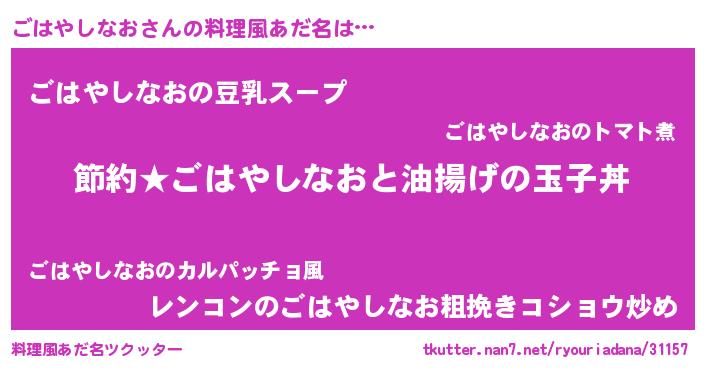 | ヒーロー風カッコイイあだ名 | 『スーパーゴハヤシナオ』『黄金騎士ゴハ』 |