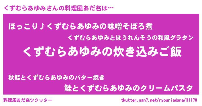 | ヒーロー風カッコイイあだ名 | 『スーパークズムラアユミ』 |