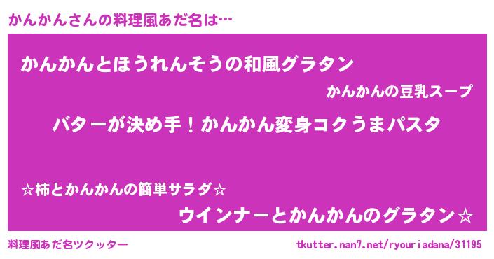 | 女子向けラノベタイトル風あだ名 | 『かんかん恋絵巻』『かんかん伯爵の花嫁』 |