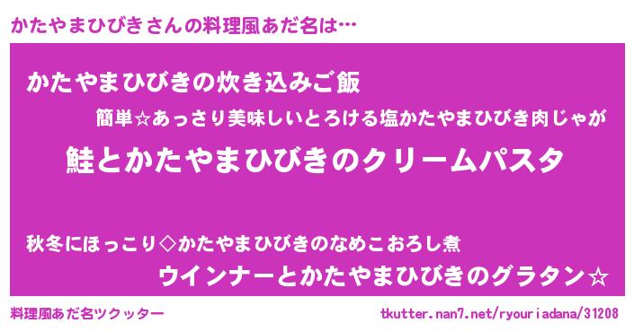 | ヘコむあだ名 | 『酢こんぶ』『かたやまひびき(笑)』 |