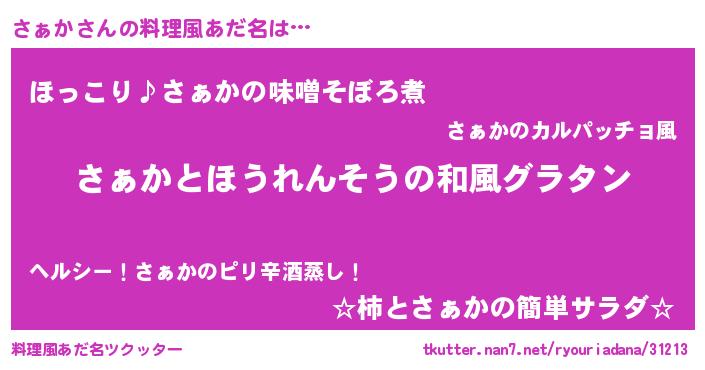 | 意味不明あだ名 | 『もやし科さぁか属』『ペロリンさぁか』 |