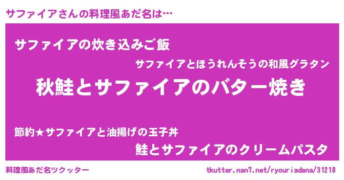 | 意味不明あだ名 | 『永久保存サファイア』『自称サファイア』 |