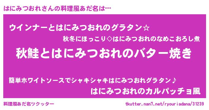 | 意味不明あだ名 | 『永久保存はにみつおれ』 |