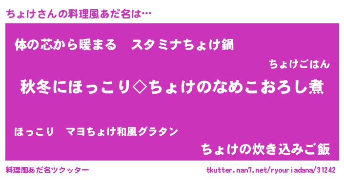 | 胡散臭い通販商品みたいなあだ名 | 『運命の人と巡り会える高級そうな皿…その名も「ちょけ」』 |