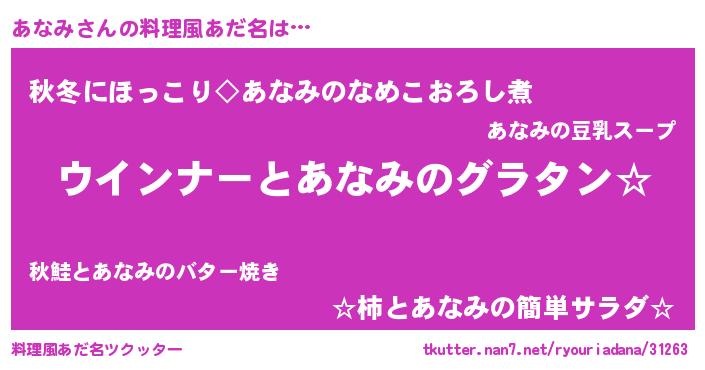| ヒーロー風カッコイイあだ名 | 『ウルトラあなみマン』『銀牙騎士アナ』 |
