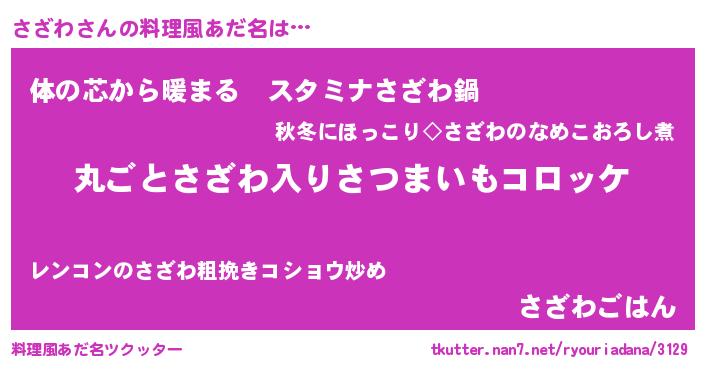 | ヒーロー風カッコイイあだ名 | 『仮面サザダー』『ウルトラさざわマン』 |