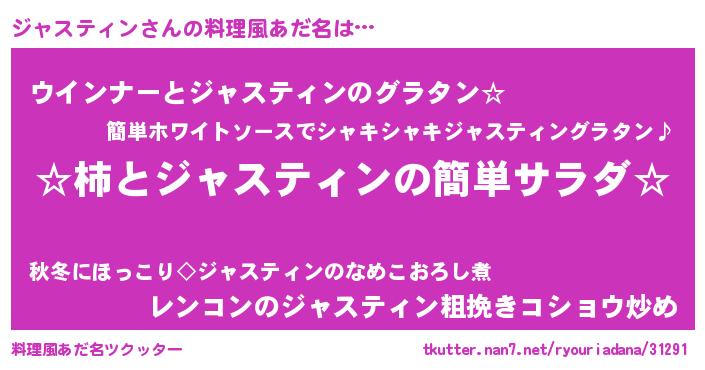| 意味不明あだ名 | 『ジャスティンフォーエバー』 |
