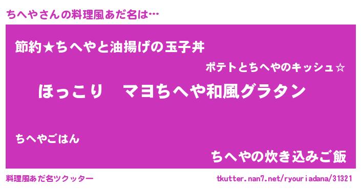 | 恥ずかしいあだ名 | 『プリティーちへや』『チヘリンリン』 |