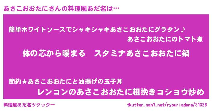 | 男性向けラノベタイトル風あだ名 | 『やはりあさこおおたにの青春ラブコメはまちがっている 』 |