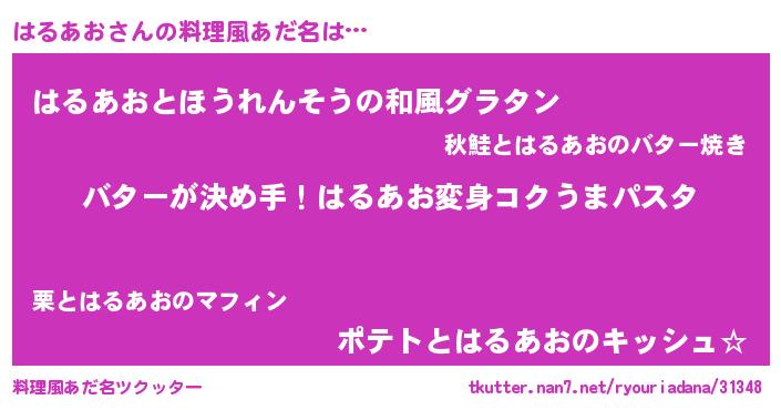 | 欧米人風あだ名 | 『ダニエルはるあお』『ウサインはるあお』 |