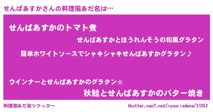 | 男性向けラノベタイトル風あだ名 | 『せんばあすかの嫁は女の子じゃないと思った?』 |