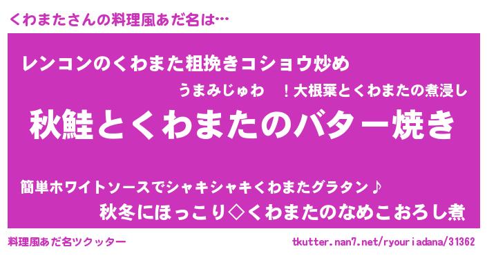 | 意味不明あだ名 | 『永久保存くわまた』『自称くわまた』 |