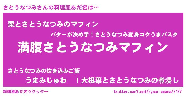 | 女子向けラノベタイトル風あだ名 | 『異世界で失敗しない100のさとうなつみ』 |